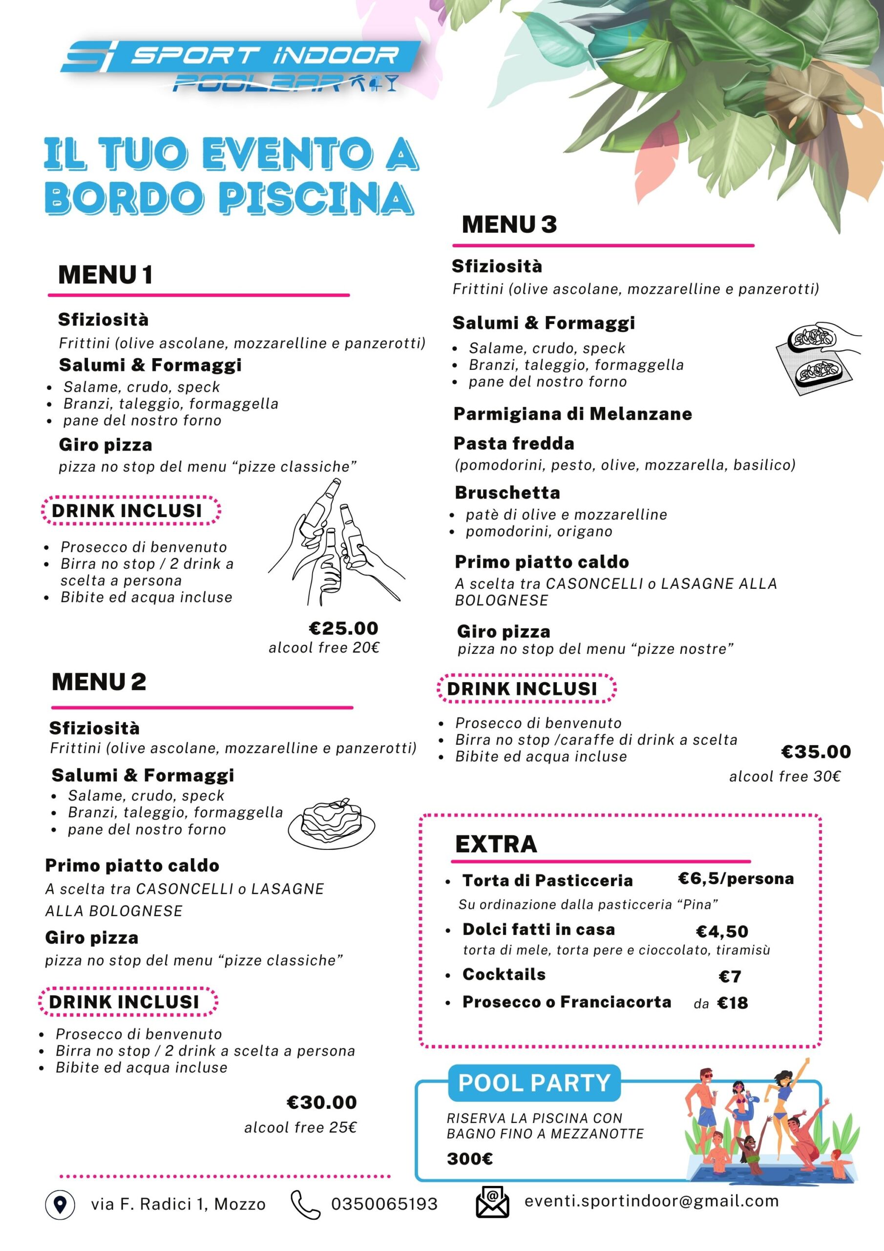 Scarica il volantino con le proposte per un evento unico e scrivi una mail a eventi.sportindoor@gmail.com